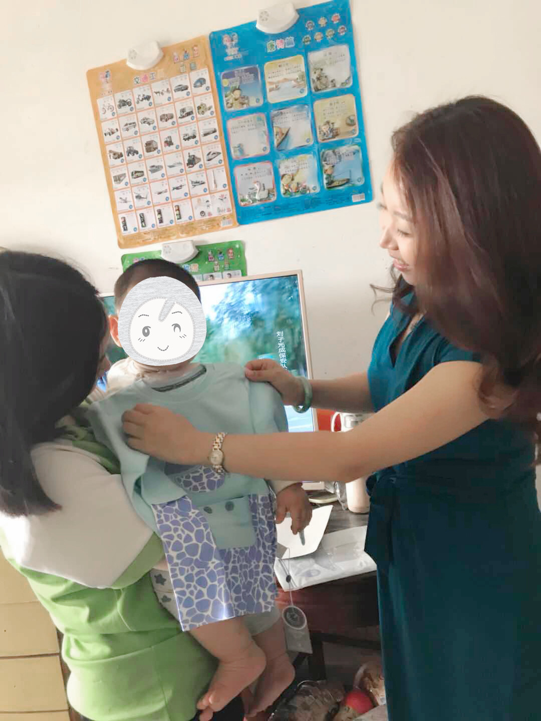 孩子将衣服穿在身上,感受親豆带来的柔软和温暖